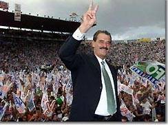 墨西哥當(dāng)選總統(tǒng)?怂菇裉炀吐殻ǜ綀D) 2000年12月1日 17:06 ![]() 中新網(wǎng)北京12月1日消息:墨西哥當(dāng)選總統(tǒng)福克斯將于今天宣誓就職,他重申,他將使墨西哥發(fā)生巨大變化。墨西哥在過(guò)去71年來(lái)都在革命路線黨的統(tǒng)治之下。 將有二十多名政府首腦參加?怂沟木吐殐x式。作為行動(dòng)黨的領(lǐng)導(dǎo)人的?怂故侨ツ昶咴庐(dāng)選為墨西哥新總統(tǒng)的。?怂贡硎舅麑⑴c貧窮、毒品、腐敗現(xiàn)象作斗爭(zhēng),并盡快與齊亞帕斯游擊隊(duì)達(dá)成協(xié)議。目前有5千萬(wàn)墨西哥人生活在貧困線以下。 目前革命路線黨在500席的議會(huì)里仍控制著211席,并控制了31個(gè)州中的19個(gè)。- |