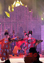 圖文:慶澳門回歸一周年文藝晚會3 2000年12月12日 09:35 ![]() 大三巴牌坊為背景的古代服飾表演.為慶祝澳門回歸一周年,中央電視臺心連心藝術(shù)團(tuán)十一日晚在澳門蓮花廣場舉辦“流光溢彩濠江情”文藝晚會,圖為以大三巴牌坊為背景的古代服飾表演。中新社傳真 宗金柱 攝