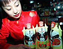 北京老舍茶館的服務小姐正在向戲迷推銷一種包裝獨特的“戲酒”。這種繪有京劇臉譜的瓶裝酒,在元旦節(jié)前一上市就受到戲迷們的青睞。中新社記者 張勤 攝