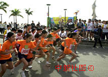 圖片:澳門中華總商會(huì)青年委員會(huì)舉行一系列慶;顒(dòng) 2000年12月18日 15:42 ![]() 澳門回歸一周年到來(lái)之際,澳門中華總商會(huì)青年委員會(huì)十七日舉行一系列慶;顒(dòng),圖為在觀音像前舉辦的環(huán)湖長(zhǎng)跑比賽。中新社傳真 宗金柱攝