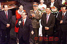 圖片:江澤民在文藝演出后走上舞臺(tái)高歌三曲 2000年12月20日 16:10 國家主席江澤民20日在慶祝澳門回歸祖國一周年慶祝大會(huì)文藝演出后走上舞臺(tái),高歌三曲——《洪湖水》、《教我如何不想她》、《歌唱祖國》,贏得滿場掌聲。中新社傳真 滿會(huì)喬 攝