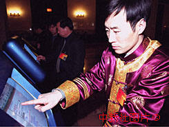 人大代表、畬族鄉(xiāng)長雷紀(jì)文查閱民族政策文件 2000年3月10日 09:07 ![]()