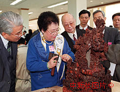 陳麗華向全國政協(xié)委員介紹紫檀雕刻工藝 2000年3月12日 09:32 ![]()