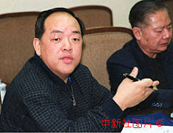 全國(guó)人大代表、澳門(mén)賀田工業(yè)有限公司董事總經(jīng)理賀一誠(chéng)(左)十四日在九屆全國(guó)人大三次會(huì)議的澳門(mén)代表團(tuán)討論會(huì)上發(fā)言。作者:陳勇