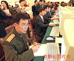 全國人大解放軍代表使用電腦查資料 2000年3月6日 08:46 ![]()
