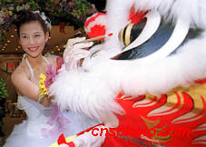影視紅星蔡少芬為婚紗攝影店開業(yè)舞獅點(diǎn)晴