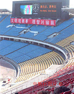 北京為申辦2008年奧運會而改建三個重要場館,其中工人體育場的新型電子顯示屏已經(jīng)基本調(diào)試完畢。中新社記者 李剛 攝