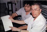 曾給李洪志做過闌尾切除手術(shù)的主治醫(yī)師、吉林省人民醫(yī)院副院長李英杰(右)講述當(dāng)年為李洪志確診手術(shù)的情景。