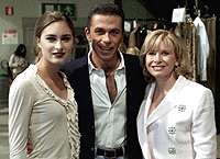 圖文:布什侄女上T臺 米蘭時裝展成亮點 2001年3月1日 16:39 勞倫(左)、設(shè)計師馬修羅和她的母親(路透社) 中新網(wǎng)米蘭3月1日消息:米蘭時裝周進行到星期三時,人們發(fā)現(xiàn)了一位T臺新秀——勞倫·布什(Lauren Bush)。16歲的她可是美國總統(tǒng)小布什的侄女哦。 微笑中透出一點點緊張,勞倫在蓋依·馬修羅(Gai Mattiolo)的2001/2002秋冬時裝專場上展示了略有些性感的外衣。馬修羅是一位以設(shè)計性感晚禮服而知名的羅馬設(shè)計師。 有媒體認(rèn)為,勞倫在臺上略顯稚嫩,還缺乏自如的專業(yè)風(fēng)范。 勞倫是美國總統(tǒng)布什的兄弟尼爾的女兒,而且已經(jīng)是一位攝影模特兒。 “我找她來為我的設(shè)計作展示,因為我覺得這個年輕姑娘有一種青春的活力,”馬修羅在勞倫上臺之前對媒體記者說。 勞倫的緊張情緒在這場時裝展進入尾聲時再也看不到了,馬修羅出來向觀眾們致意,旁邊伴隨著勞倫。她笑得很燦爛。而她的媽媽,則一直在為她鼓掌。 |