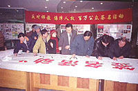 北京供電局職工參加“反對邪教、保障人權(quán)”百萬公眾簽名活動。