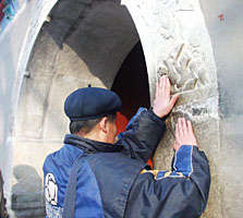 這是一位市民在北京白云觀中“摸猴”。按民間說(shuō)法,在這里“摸猴”可獲得好運(yùn)。