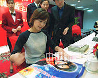 中國青年女演員徐靜蕾因其良好的社會(huì)聲譽(yù)被全國婦聯(lián)授予“健康大使”稱號(hào),她正忙于為觀眾簽名。中新社記者 王麗南 攝