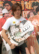 歌星陳曉東19日在香港出席「森美小儀歌劇團(tuán)」成立儀式,手抱小儀紙版公仔造型。中新社傳真 鄧慶樂 攝