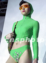 廣東東莞市天倫實業(yè)有限公司,二十七日在北京舉行“軒妮.女人香”專場時裝作品發(fā)布會,著名旅美高級服裝設(shè)計師劉洋創(chuàng)作新款作品。圖為中國名模展示休閑女裝。中新社記者 錢興強 攝
