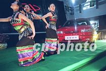 上海奇瑞汽車3日在北京國際博覽會上,用民族舞蹈詮釋國產(chǎn)家用轎車的魅力。已有12年歷史的北京國際博覽會首次展出家用汽車。中新社圖 鄭萍萍 攝
