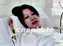 中國(guó)失蹤飛行員王偉的妻子四月六日在病床上等待著丈夫的歸來。中新社圖