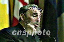 日前, 在古巴哈瓦那召開的各國議會聯(lián)盟第一百零五屆大會上,古巴國務委員會主席卡斯特羅指出,美國政府在撞機事件后的表態(tài)是“典型的冷戰(zhàn)語言”。他說,中國政府絕不會懼怕美國的霸權主義行徑。中新社圖