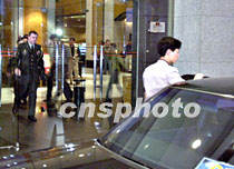 美國駐華使館官員席樂高等人,九日晚七時許走出海口文華大酒店,乘中方車輛前去與美國偵察機機組人員進行第四次見面。中新社記者 賈國榮 攝