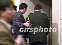 美國駐華使館官員席樂高九日晚八時在?谖娜A酒店出席海南省外事辦公室舉行的新聞發(fā)布會后,在中方人員的陪同下走后門離去,避免被記者圍追提問。中新社記者 賈國榮 攝