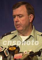 美國駐華使館武官席樂高準(zhǔn)將十一日晚十時四十分在?谖娜A大酒店新聞發(fā)布會上說,他已同中方見面并得到釋放機(jī)組人員的細(xì)節(jié)和具體要求,美方需要研究考慮。中新社記者 賈國榮 攝