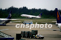 一架美國(guó)租用的客機(jī)十二日凌晨七時(shí)三十九分從中國(guó)海南省?谑忻捞m機(jī)場(chǎng)起飛離地,搭載美國(guó)軍用偵察機(jī)的機(jī)組人員離境回國(guó)。中新社記者 賈國(guó)榮 攝