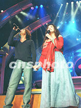 來自香港的著名流行歌手齊秦、齊豫14日晚在迎大運(yùn)助申奧大型公益晚會(huì)上演唱歌曲《奧林匹克星》。中新社圖 鄭萍萍 攝