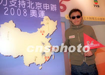 歌星陳奕迅18日在香港出席無線電視制作「支持北京申辦2008奧運大行動」節(jié)目記者會。并簽名支持北京申辦2008奧運。中新社傳真 鄧慶樂 攝