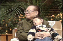 中國(guó)國(guó)家主席、中央軍委主席江澤民二十日在北京人民大會(huì)堂抱著王偉的兒子,會(huì)見被美機(jī)撞毀犧牲的飛行員王偉的家屬。