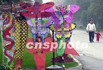 北京園林商店備好多姿多彩的風(fēng)箏,為五月歡度七天長假的游客準(zhǔn)備乘風(fēng)放飛。中新社記者 賈國榮 攝
