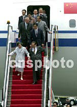 國家主席江澤民五月八日中午抵達(dá)香港國際機(jī)場。中新社傳真 任海霞攝