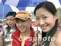 中國(guó)香港車手周浩云與模特喜笑顏開 2001年5月8日 17:35