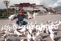 圖:布達(dá)拉宮廣場(chǎng)上的信鴿 2001年5月9日 19:36 ![]() 西藏拉薩市布達(dá)拉宮廣場(chǎng)上,新從內(nèi)地引進(jìn)數(shù)百羽雪白的信鴿與市民及游客作伴、嬉戲。成為市區(qū)一新景觀。中新社記者 鄒憲 攝