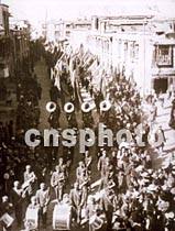 一九五零年十月西藏和平解放,拉薩市人民夾道歡迎中國人民解放軍。(輝煌五十年大事回顧7)