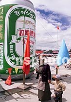 圖:“拉薩啤酒”以巨型酒瓶作廣告推銷新產(chǎn)品 2001年5月9日 20:23 ![]() 正在拉薩市布達(dá)拉宮廣場上舉辦的西藏名優(yōu)新特別產(chǎn)品展示會上,西藏目前已上市的六家公司之一的“拉薩啤酒”,以巨型酒瓶作廣告推銷新產(chǎn)品。中新社圖 趙偉 攝