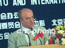 黎巴嫩駐華大使齊丹·薩基爾九日在第四屆中國北京高新技術產(chǎn)業(yè)國際周“入世”與國際合作論壇上作《我們需要中國農(nóng)業(yè)合作項目》的演講。中新社圖 史利 攝