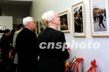 美國(guó)外交政策全國(guó)委員會(huì)的喬治 斯瓦夫和夫人二十五日在紐約饒有興趣地觀看《拉薩一日》圖片展上的精彩照片。中新社圖 龔文謨 攝