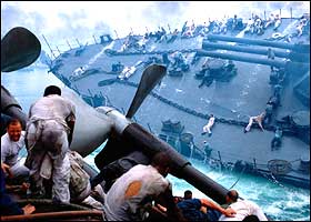 圖文:美國媒體“轟炸”《珍珠港》 2001年6月1日 15:03 ![]() 《珍珠港》的特效場面還是很有看頭 中新網(wǎng)紐約5月31日消息:片長約3小時的《珍珠港》5月25日在美國上映,美國影評界惡評如潮,由權(quán)威電影雜志“Variety”為首的美國傳媒紛紛開始對《珍珠港》進(jìn)行“轟炸”。 據(jù)聯(lián)合早報報道,《洛杉磯日報》發(fā)表文章表示,該片悶得連華納電視網(wǎng)絡(luò)都要因其淡而無味而拒絕播映。 《紐約郵報》評論說,40分鐘的精彩爆炸場面后是數(shù)小時可預(yù)知和陳腐的浪漫戲。 《華爾街日報》認(rèn)為,《珍珠港》無深度,松散的故事將二次世界大戰(zhàn)變成一章愚蠢的交響樂。 《華盛頓郵報》則提醒入場觀眾選擇通道旁的座位,因為在觀看過程中絕對至少上兩次廁所;蛟S此片應(yīng)叫《悶!悶!悶!》(Bore-a, Bore-a, Bore-a)。 “Variety”的評價則是:視覺上令人震撼的電影,其劇本與眾演員同樣膚淺。(李亦筠) 相關(guān)報道:圖文:《珍珠港》為玩具市場創(chuàng)造商機 相關(guān)報道:戰(zhàn)爭史詩片《珍珠港》并不忠于史實 相關(guān)報道:戰(zhàn)爭史詩片《珍珠港》北美票房輕松奪冠 相關(guān)報道:《珍珠港》讓凱特·貝金塞爾一夜成名 相關(guān)報道:《珍珠港》男主角本·艾弗利克要做快樂的單身漢 |