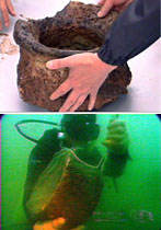 中國云南撫仙湖水下考古的隊(duì)員們六月三日九時許,在水下考古現(xiàn)場發(fā)現(xiàn)一個陶器,并將這個陶器運(yùn)出水面進(jìn)行研究分析,有專家認(rèn)為這是漢代的“釜”(鍋),是一種生活用具。