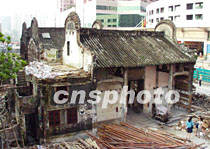 始建于雍正元年,孫中山曾批示要“永遠(yuǎn)保留”的廣州錦綸會(huì)館,因位于正在修建的康王路上,將被整體向后向西平移一百五十米,成為中國(guó)第二例文物建筑平移工程。圖為將被平移的錦綸會(huì)館。中新社圖 羅仰明 攝
