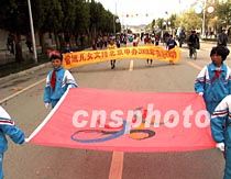 西藏日喀則的兒童們六月走上街頭,支持北京申辦奧運。中新社圖 蕭琨 攝