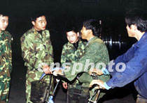 浙江省玉環(huán)縣的巡邏隊員夜間在刑事案件多發(fā)地段巡查。這支在“嚴(yán)打”中協(xié)助警方治理社會治安的夜巡隊伍,已抓獲犯罪嫌疑人六百五十六名,協(xié)助警方破案一百五十四起。中新社圖 於建偉 攝