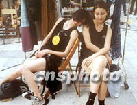圖:T型臺(tái)下的模特小姐 2001年07月03日 12:26 ![]() 日前在北京舉行的一次模特大賽上,兩名參賽模特在緊張的賽事之余,抓緊時(shí)間靠在一起休息片刻。中新社記者 錢興強(qiáng) 攝