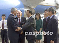 ![]() 美國國務(wù)卿鮑威爾二十八日八時十五分抵達北京國際機場,開始對中國的訪問。中新社記者 滿會喬 攝 ![]() 美國國務(wù)卿鮑威爾二十八日上午八時十五分抵達北京國際機場,開始對中國的訪問。中國駐美大使楊潔篪和美國駐華大使雷德等前往機場迎接。中新社記者 滿會喬 攝