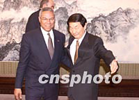 朱鎔基:相信鮑威爾此次訪問有助改善中美關(guān)系 2001年07月28日 17:06 ![]() ![]() 朱镕基會(huì)見美國國務(wù)卿鮑威爾。 中新社記者 毛建軍 攝 中新社北京七月二十八日電(記者 譚宏偉)中國總理朱鎔基今天下午在中南海紫光閣會(huì)見了到訪的美國國務(wù)卿鮑威爾。 朱鎔基對鮑威爾的來訪表示歡迎。他說,中美關(guān)系正處在關(guān)鍵時(shí)期,相信此次訪問有助于改善中美關(guān)系。他說,中方正期待著布什總統(tǒng)今年訪華,江澤民主席將于布什總統(tǒng)舉行會(huì)晤,這將是一個(gè)非常難得的歷史機(jī)遇。 鮑威爾表示非常高興到中國訪問,訪問雖然是短暫的,但是已經(jīng)看到中國發(fā)生了不起的變化。他說,布什總統(tǒng)正期待著對中國進(jìn)行訪問。 截止記者發(fā)稿時(shí)為止,會(huì)見仍在進(jìn)行。 鮑威爾是今年美國新政府執(zhí)政以來訪華最高級(jí)別官員,此行也是為布什總統(tǒng)今年十月訪華做準(zhǔn)備。 鮑威爾是今天上午抵達(dá)北京開始對中國訪問的,十六年前他曾訪問過中國。(完) |