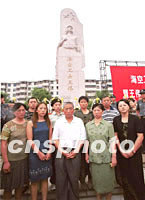 圖文:“?招l(wèi)士”王偉的塑像在浙江湖州落成 2001年08月02日 06:19 ![]() 中國“?招l(wèi)士”王偉塑像落成典禮八月一日在浙江省湖州市鳳凰公園廣場舉行,由花崗巖制作的王偉塑像高10米、寬2.2米、厚2.3米、重約80噸,采用的是南京藝術(shù)學(xué)院青年教師、著名雕塑家李廣玉構(gòu)思的設(shè)計方案。中新社圖 張全躍 攝 ![]() 中國“?招l(wèi)士”王偉塑像落成典禮八月一日在浙江省湖州市鳳凰公園廣場舉行,王偉父母王明、王月琴(中)、妻子阮國琴(右)、姐姐(右四)等親屬與近千名各界群眾和當(dāng)?shù)伛v軍官兵參加了儀式并合影留念。中新社圖 張全躍 攝