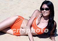 正在青島舉行的戴安娜2001世界精英模特大賽中國(guó)預(yù)選賽暨金沙灘模特大賽,十一日在金沙灘景區(qū)拍攝外景。圖為一名身穿泳裝的模特在沙灘上拍照。 中新社記者 錢(qián)興強(qiáng) 攝
