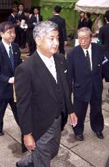 日本五名內(nèi)閣大臣和一百九十名議員參拜靖國神社 2001年08月15日 11:31 ![]() 防衛(wèi)廳長官中谷元參拜靖國神社 ![]() 前首相橋本龍?zhí)蓞菥竾裆?br/> 中新網(wǎng)北京8月15日消息:繼首相小泉純一郎之后,小泉內(nèi)閣的五名閣僚在今天日本終戰(zhàn)紀(jì)念日前往東京九段北的靖國神社參拜。 這五人是總務(wù)相片山虎之助、農(nóng)業(yè)相武部勤、經(jīng)濟(jì)產(chǎn)業(yè)相平沼赳夫、國家公安委員長村井仁和防衛(wèi)廳長官中谷元。 此外還有包括前首相橋本龍?zhí)稍趦?nèi)的一百九十名議員或其代表以及東京都知事石原慎太郎也在今天日本戰(zhàn)敗五十六周年紀(jì)念日參拜了靖國神社。 |