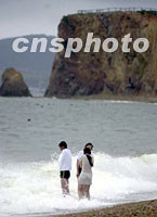 組圖:迎接APEC高官會(huì) 2001年08月19日 19:08 ![]() 憑窗對(duì)面黃海之濱的玻璃大廳是APEC高官會(huì)議八月選在大連的場(chǎng)所之一,工人們忙于準(zhǔn)備迎接,將廳內(nèi)擦拭得明亮潔凈。中新社記者 賈國(guó)榮 攝 ![]() 在大連金石灘黃金海岸,看海者們被這里的山色和白浪所吸引。APEC高官會(huì)議八月中旬首次在如此美景的海濱舉行。中新社記者 賈國(guó)榮 攝
