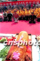 中新社佛山八月二十七日電(記者辛述之)今天是中國(guó)武林奇人黃飛鴻一百四十五周年誕辰,來(lái)自美國(guó)東、西部海外黃飛鴻門人尋根團(tuán)一行近百人,上午來(lái)到廣東佛山黃飛鴻紀(jì)念館,舉行拜師盛會(huì)并進(jìn)行武術(shù)表演。 晚清時(shí)期一代武術(shù)宗師黃飛鴻,一八五六年八月二十七日誕生于佛山。黃飛鴻武藝超凡,其富有傳奇色彩的故事,曾被拍成百余部電影在海外廣為流傳,其英名不但在國(guó)人心里扎根,而且還受到許多外國(guó)人的仰慕。 黃飛鴻門下弟子眾多,遍布粵港澳、東南亞乃至美加、歐洲等地。在人們心中,他已成為一個(gè)行俠仗義、扶危濟(jì)困,具有中華傳統(tǒng)美德的藝術(shù)形象而家喻戶曉。 今天,適逢座落于佛山祖廟的黃飛鴻紀(jì)念館全面開(kāi)放,粵港澳武術(shù)界有關(guān)人員結(jié)伴前來(lái),參加紀(jì)念盛會(huì)。上午九時(shí),參加過(guò)國(guó)慶五十周年慶典的二十頭醒獅起舞迎賓,黃飛鴻的傳人、著名武術(shù)家趙志凌、余志偉等為黃飛鴻紀(jì)念館醒獅點(diǎn)睛,并帶領(lǐng)來(lái)自美國(guó)東、西部的近百名黃飛鴻門人,按照傳統(tǒng)武林習(xí)俗拜祭祖師黃飛鴻。 隨后,進(jìn)行了大型群鼓表演、舞龍表演和舞獅表演。余志偉、趙志凌及其洋弟子相繼表演了精彩的黃飛鴻拳術(shù),其不凡的身手和高超的武藝,博得觀眾高聲喝彩和陣陣掌聲。 據(jù)了解,黃飛鴻紀(jì)念館今后將每年舉辦世界黃飛鴻門人大聯(lián)誼,還將舉辦國(guó)際洪拳大賽,黃飛鴻、霍元甲南北大俠國(guó)際武術(shù)邀請(qǐng)賽等活動(dòng)。(完) |