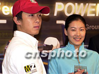組圖:伏明霞出席"李英健方程式賽車計劃"記者會 2001年08月29日 19:06 ![]() 香港賽車手李英健(左二)是首位華人擠身國際三級方程式賽車手,M ZONE(ASIA)LTD.為推擴賽車運動將于今年在珠海國際賽車場舉辦賽車同樂日,并邀請?zhí)屎蠓飨汲鋈渭钨e乘客,藉此將賽車運動在國內推擴提升。中新社圖 鄧慶樂 攝 ![]() 跳水皇后伏明霞29日在香港出席“李英健方程式賽車計劃”記者會。香港賽車手李英健向伏明霞致送紀念品。中新社圖 鄧慶樂 攝